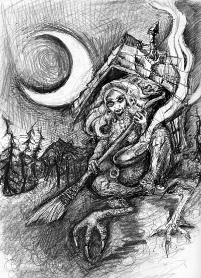 I had mentioned to Alyssa that I was hoping to do something with it and that I wanted it to reflect a folklore from the mountains and forests of Eastern Europe. There is an incredibly rich history of tales from that part of the world, so much culture started there. I wanted to honor that history and so I went for the biggest, baddest legend ever: Baba Yaga.